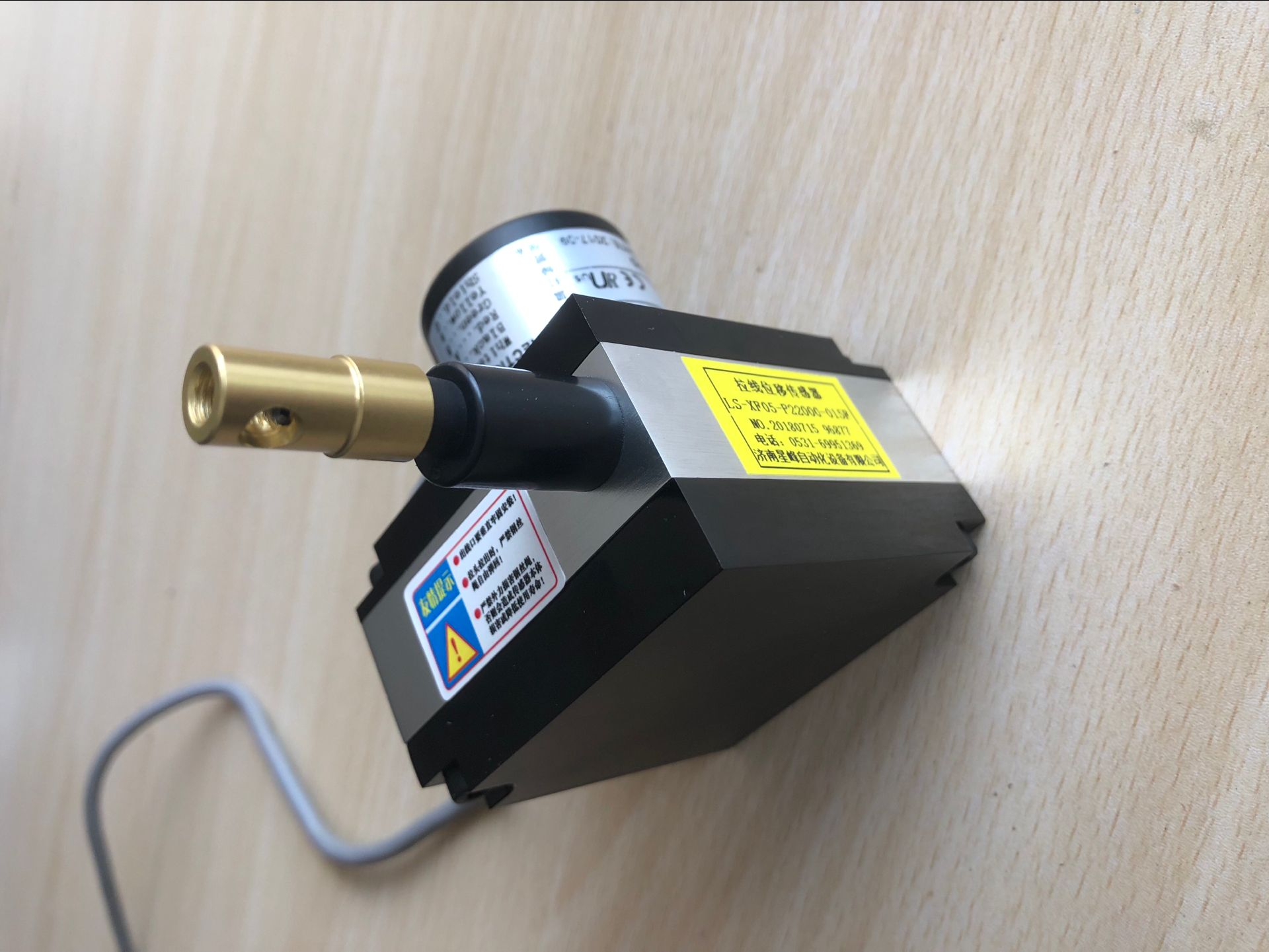 操作上,拉繩式位移傳感器安裝在固定位置上,拉繩縛在移動物體上。拉繩直線運動和移動物體運動軸線對準。運動發生時,拉繩伸展和收縮。一個內部彈簧保證拉繩的張緊度不變。帶螺紋的輪轂帶動精密旋轉感應器旋轉,輸出一個與拉繩移動距離成比例的電信號。測量輸出信號可以得出運動物體的位移、方向或速率。