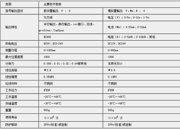 此款屬于微型拉線(繩)位移傳感器,用來記錄測量長度0-1000mm的線性距離、模擬量和數字量輸出,標準化接口,可以堅固耐用特別是適合短距離,高分辨率的場合。主要特點:安裝方便,設有備用安裝基準面,根據需要多種選擇;安裝空間小,安裝難度低;無需導向,機械公差不影響測量精度;廣泛應用于直線導軌系統,液壓氣缸系統、伸縮系統,倉儲位置定位,壓力機械,造紙機械,紡織機械,金屬板材機械,包裝機械,印刷機械,水平控制儀,建筑機械等相關尺寸測量和位置控制;可外接PLC 二次儀表,單片機等等采集系統